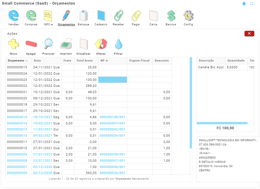 O objetivo do orçamento é criar e entregar ao cliente uma proposta de venda de alguns produtos. O orçamento não baixa as quantidades do estoque, essa baixa, só irá quando este documento for importado e autorizado por um documento fiscal, ou seja, somente após a venda ser efetivada de fato.